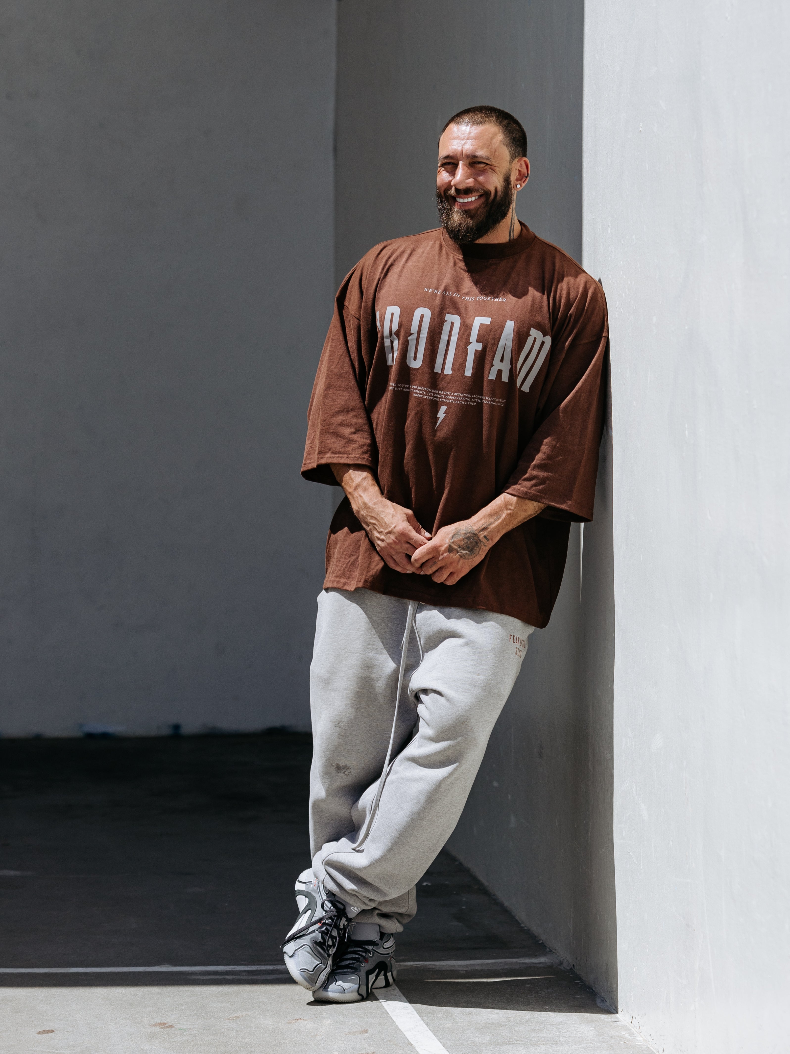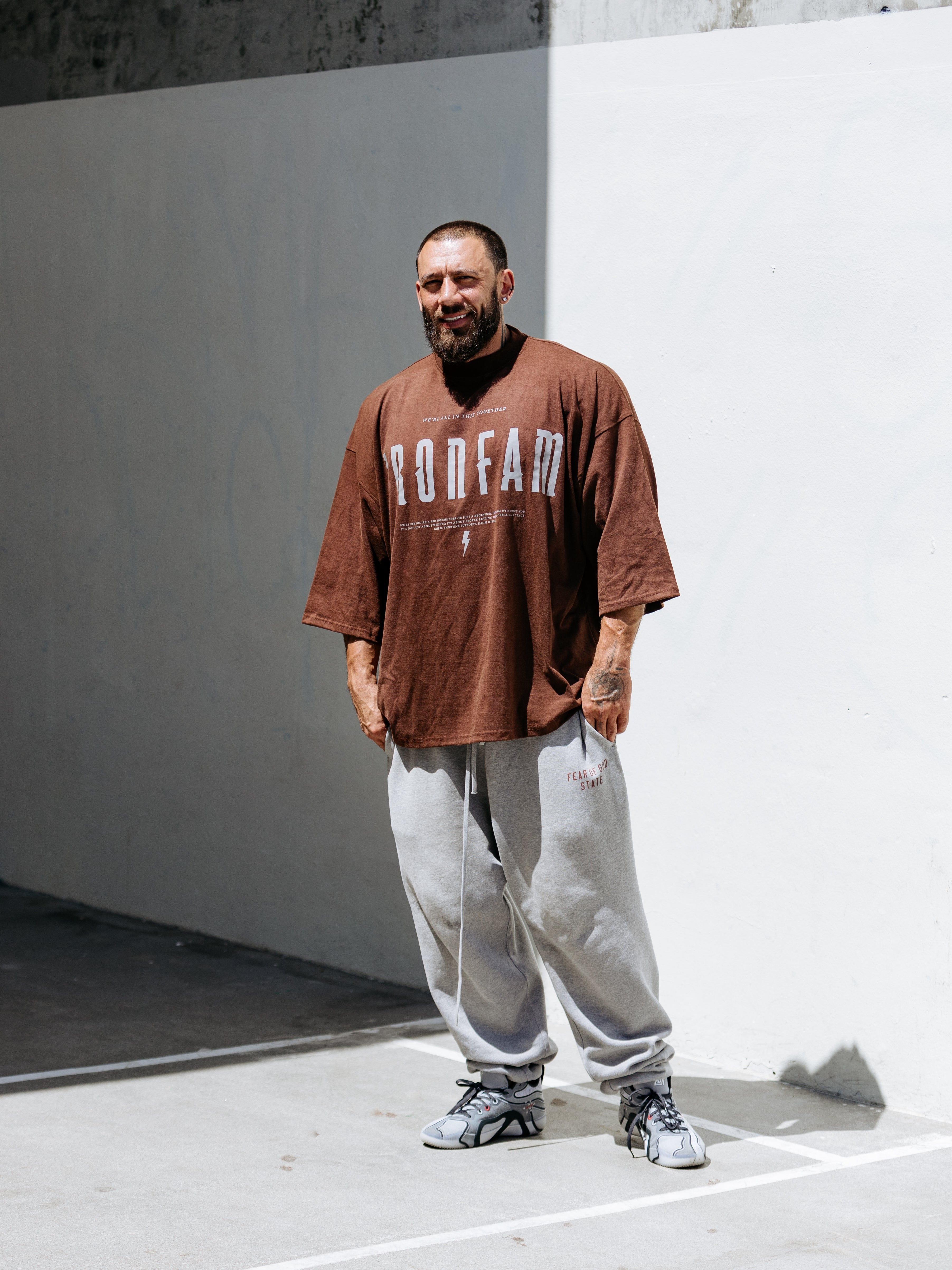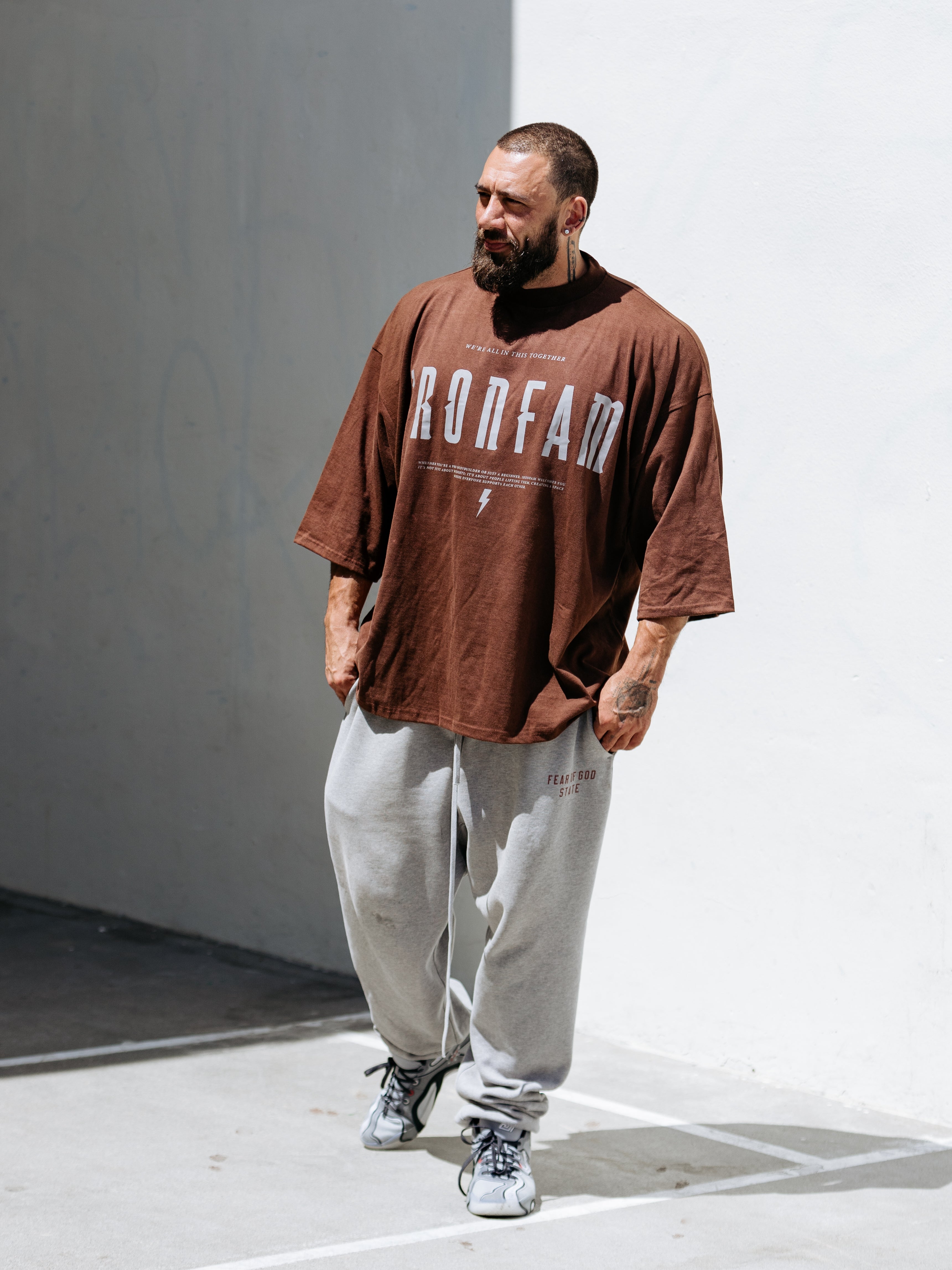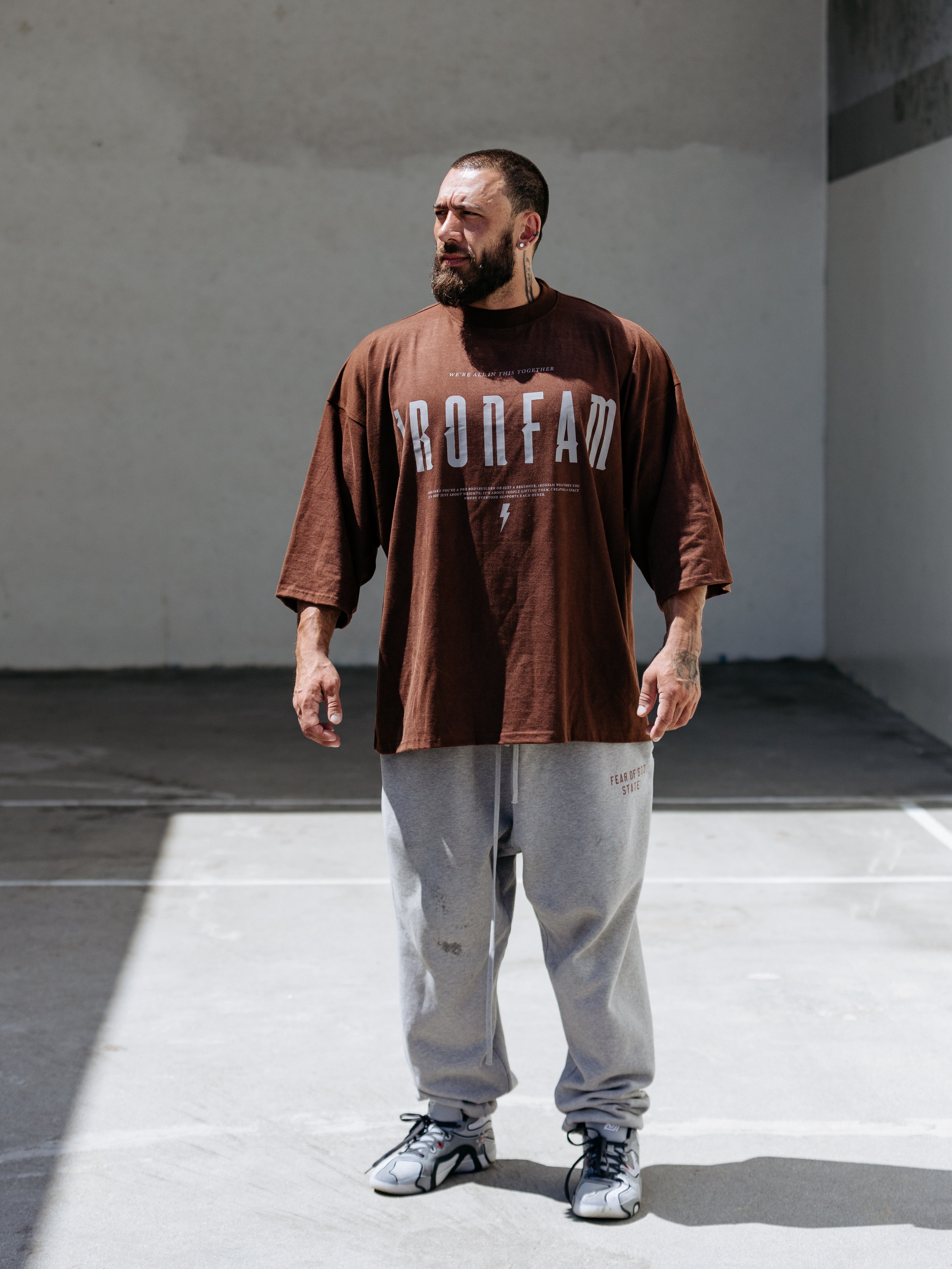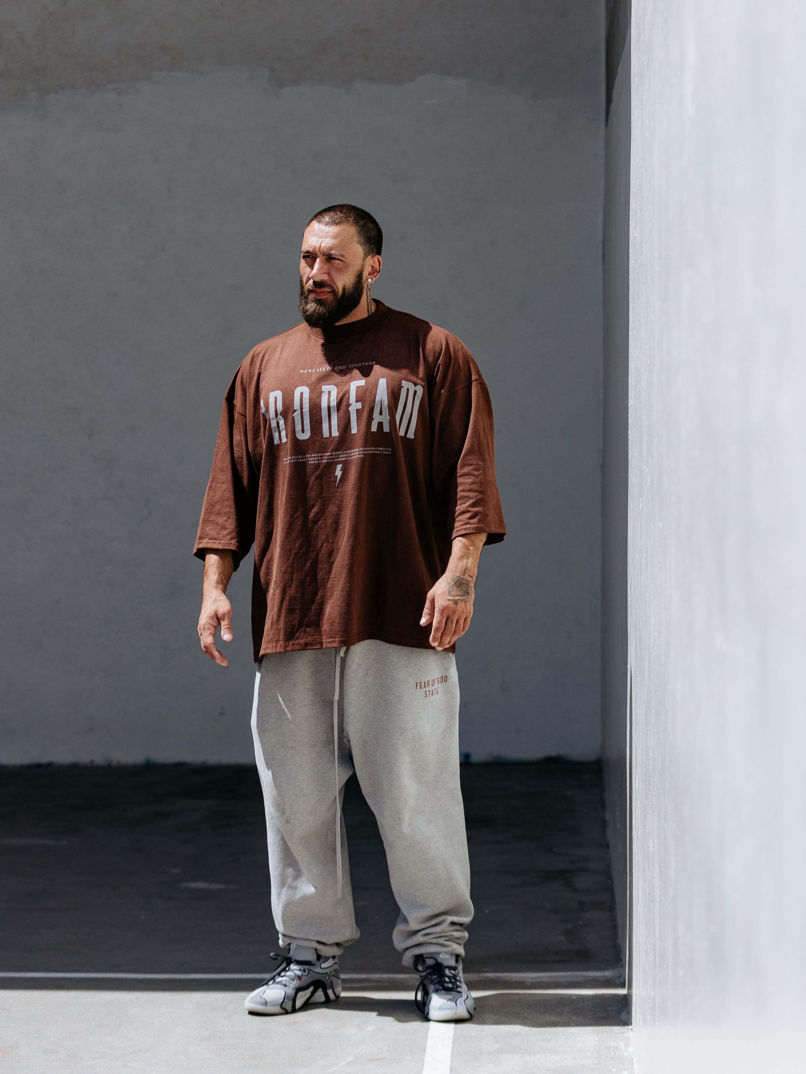 Elevate your gym style with our IRONFAM Pump-Cover T-Shirt, designed specifically for the bodybuilding community. This oversized, baggy style t-shirt is crafted from a high-density 300GSM cotton fabric, ensuring exceptional durability and longevity.