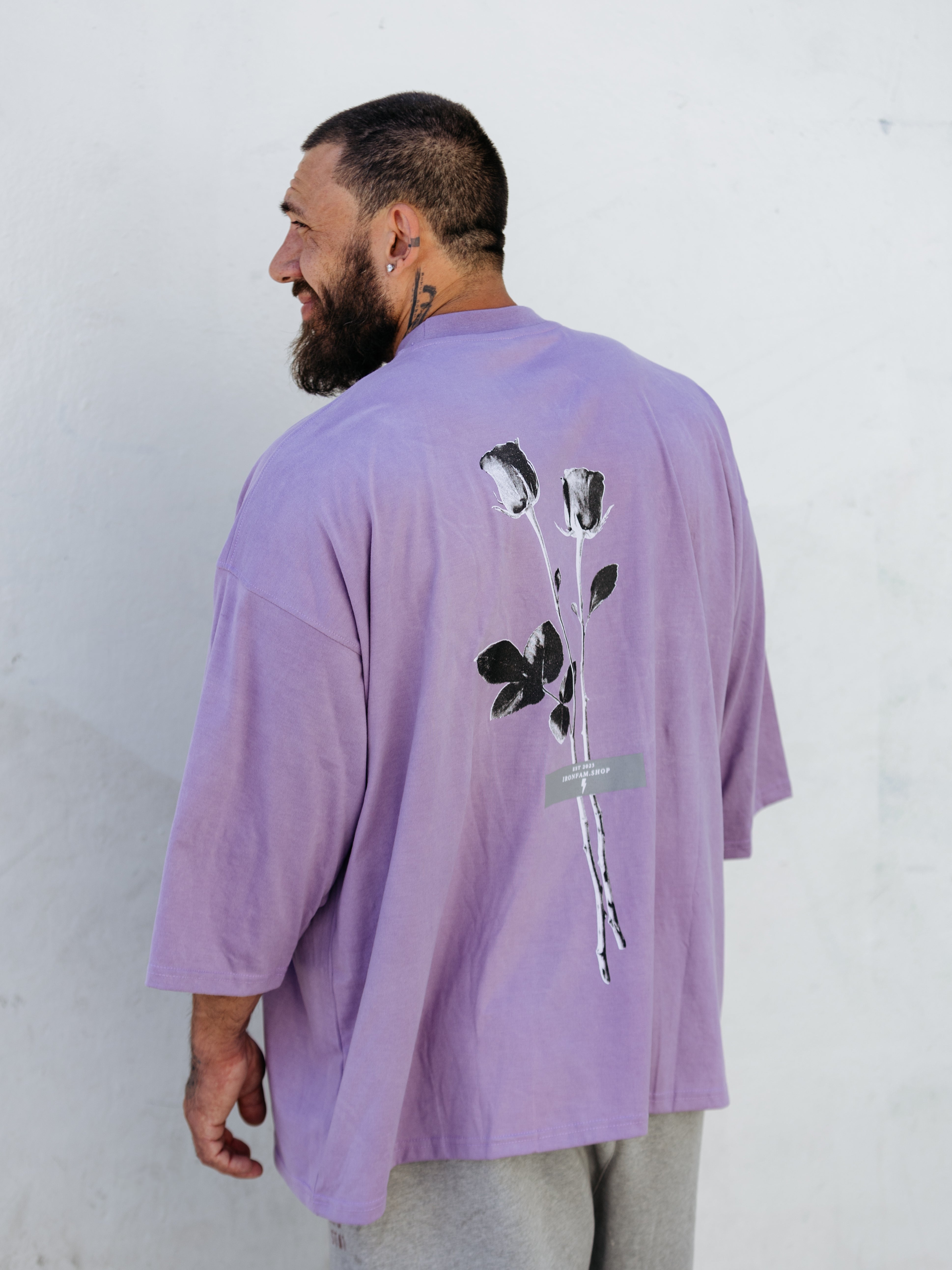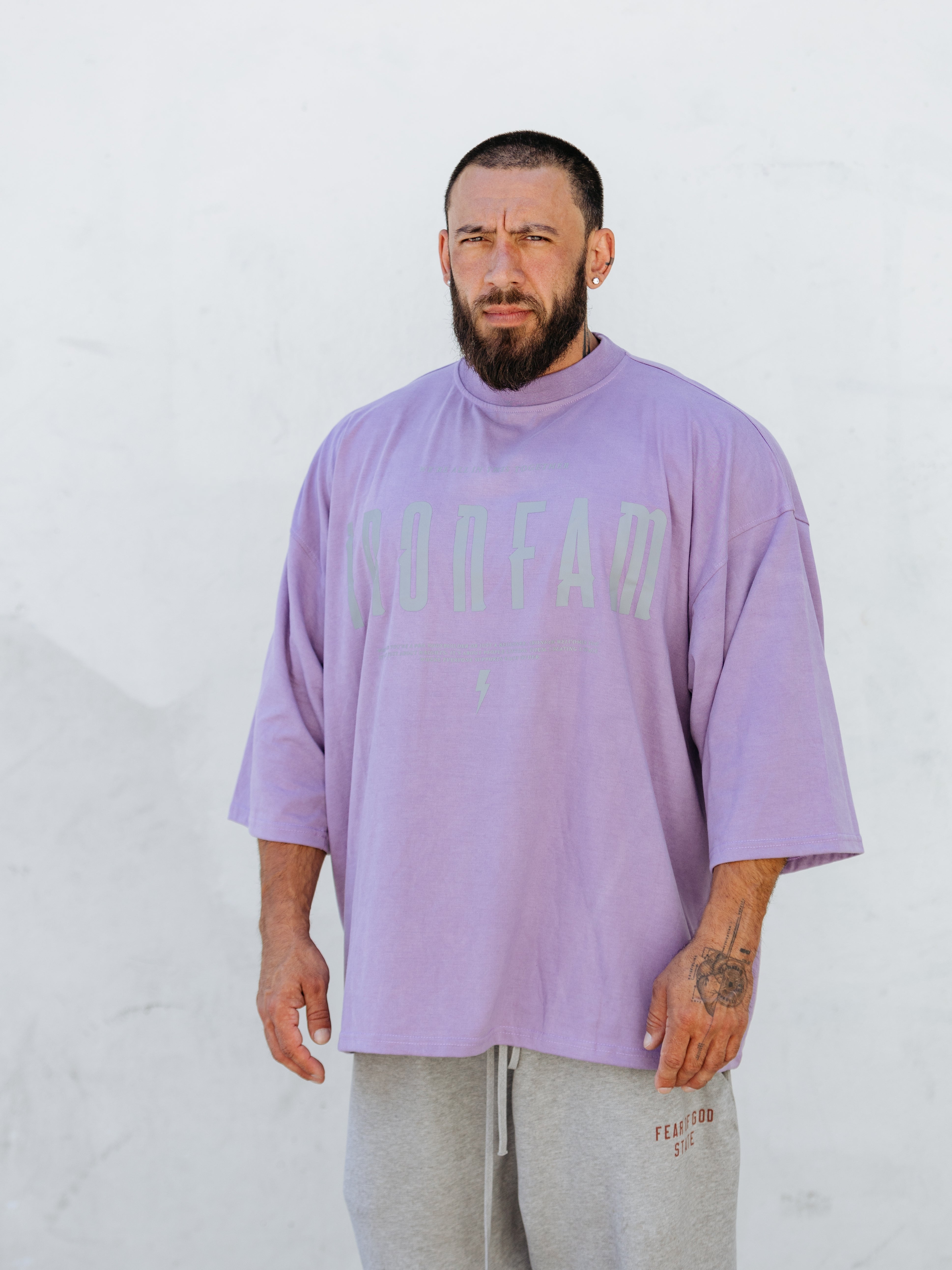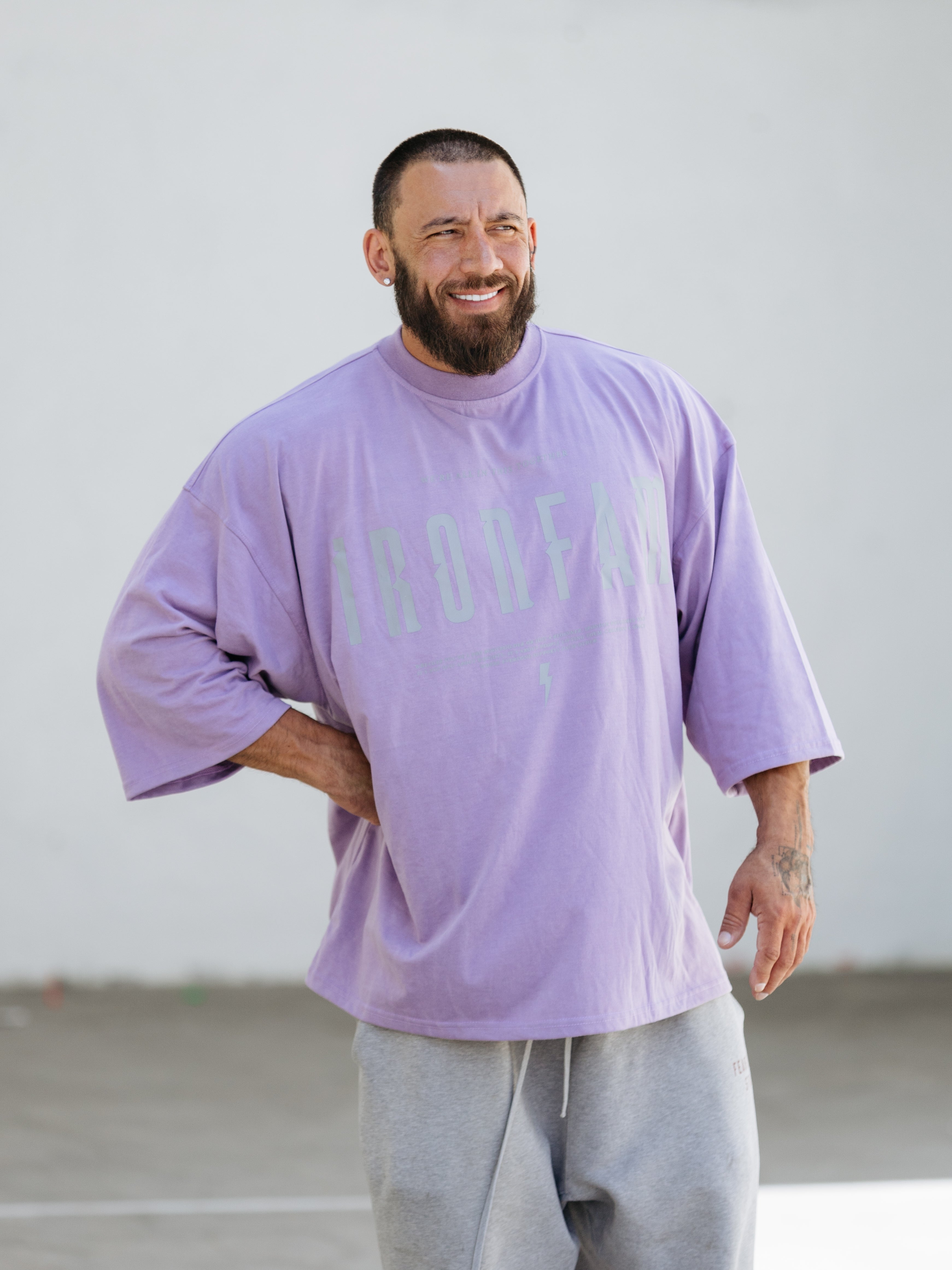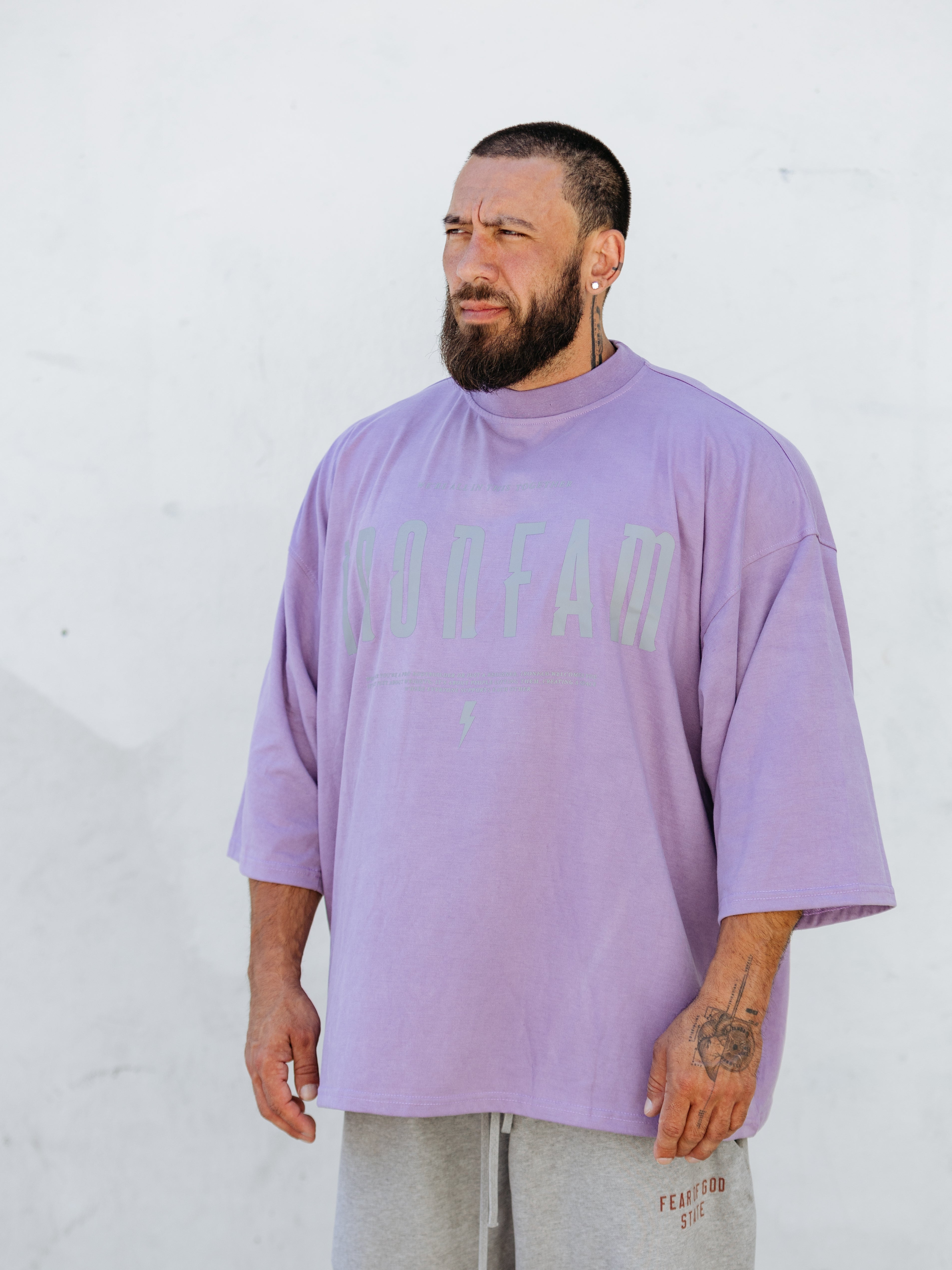 Elevate your gym style with our IRONFAM Pump-Cover T-Shirt, designed specifically for the bodybuilding community. This oversized, baggy style t-shirt is crafted from a high-density 300GSM cotton fabric, ensuring exceptional durability and longevity.