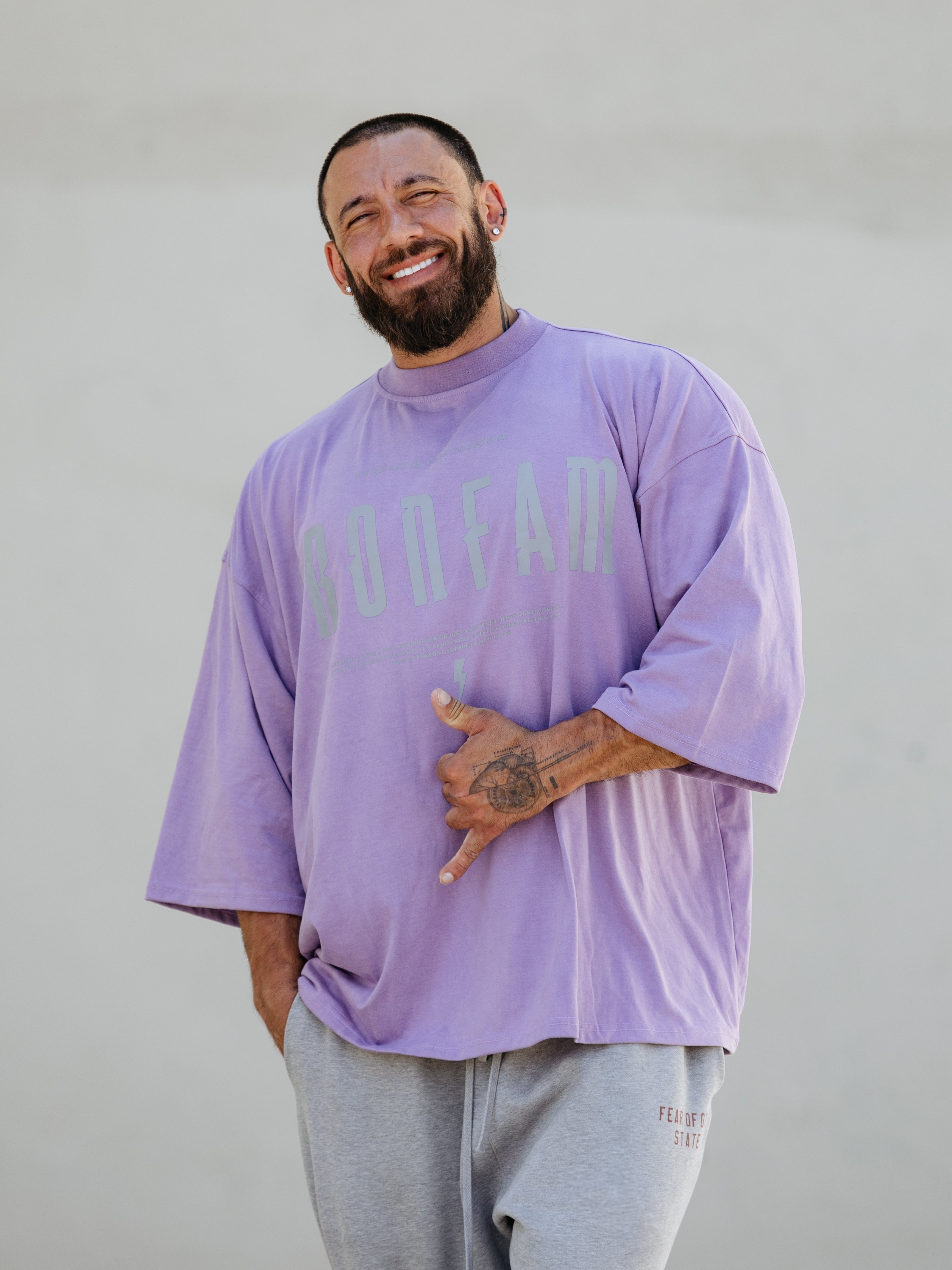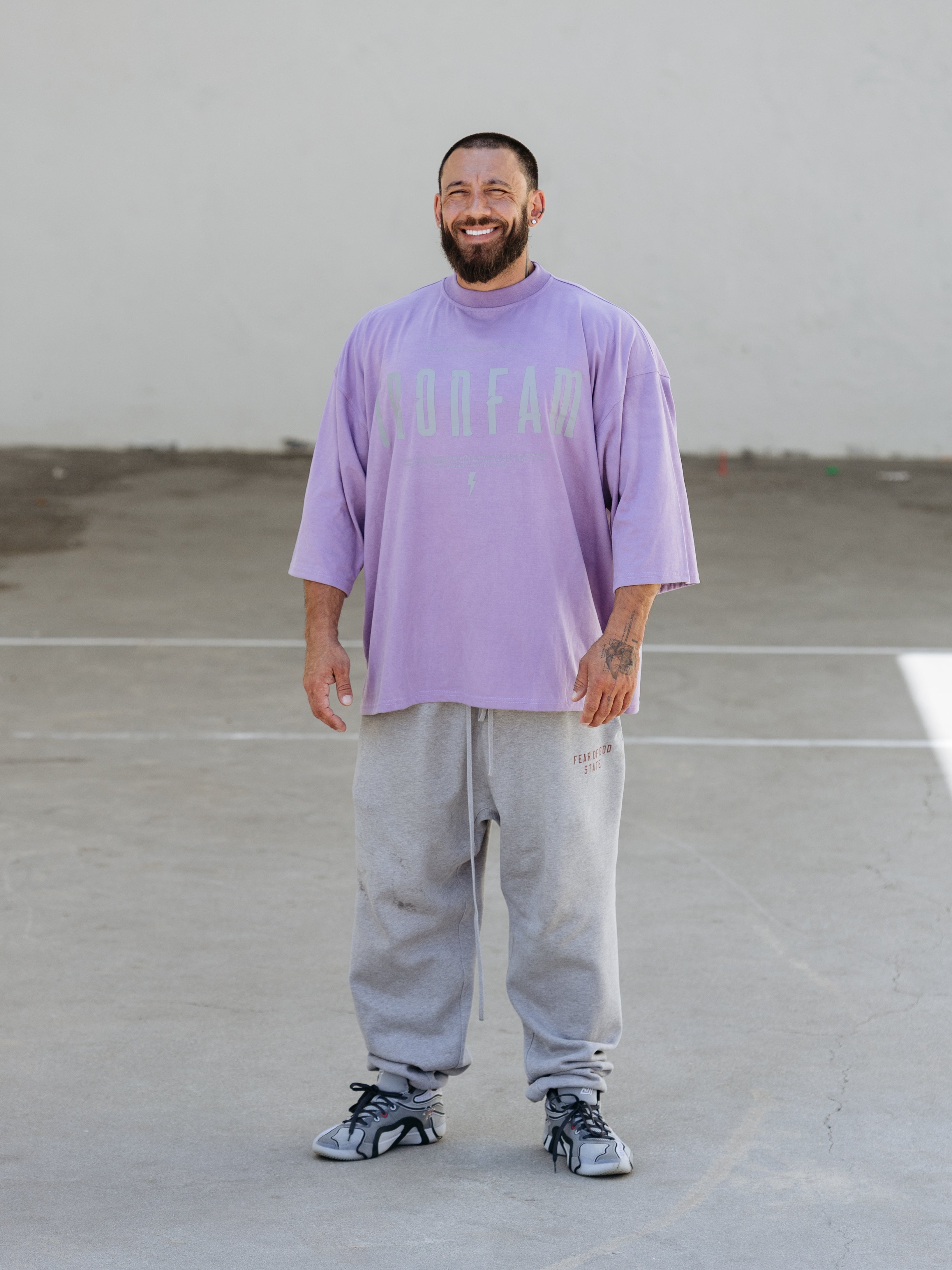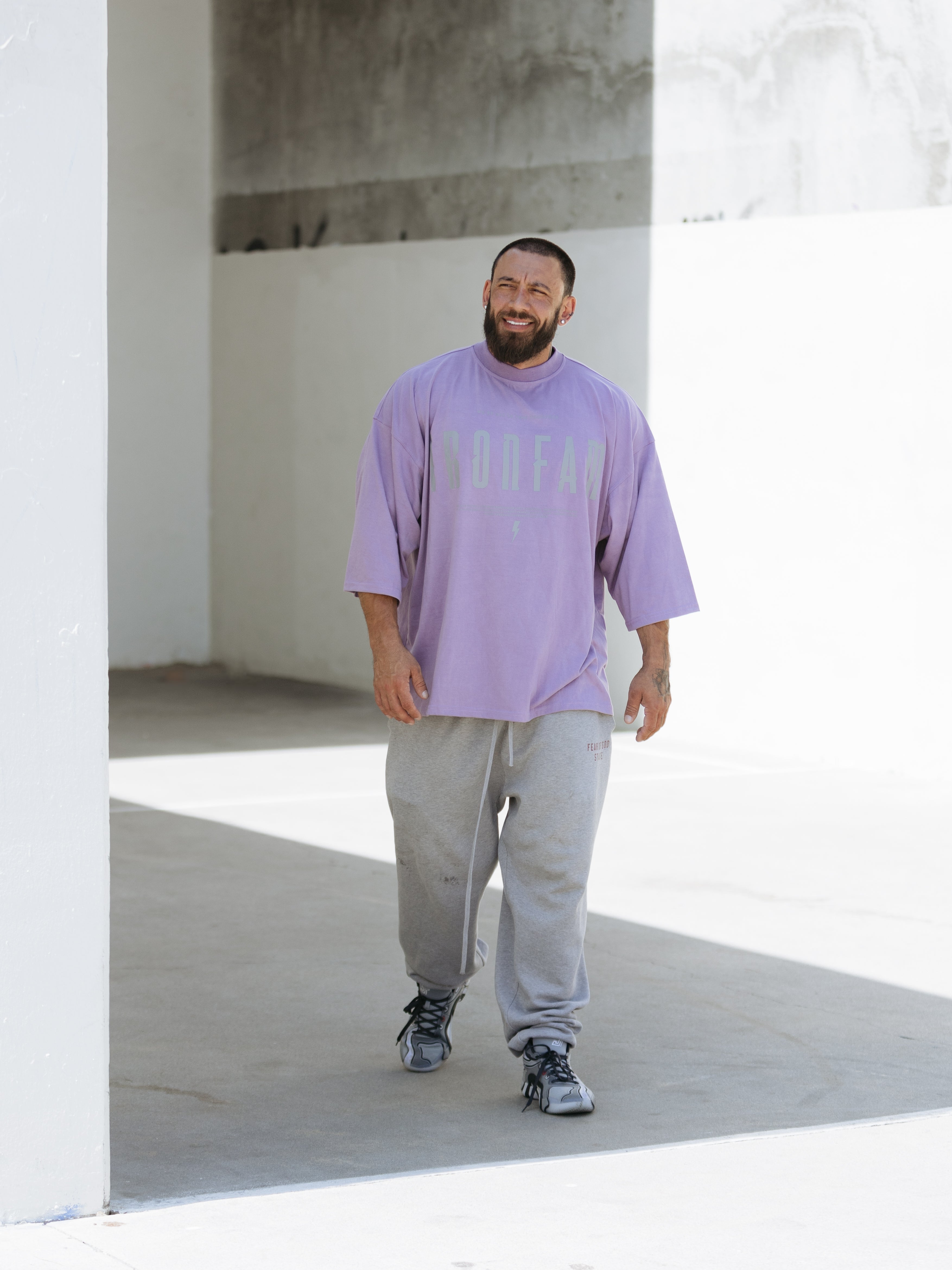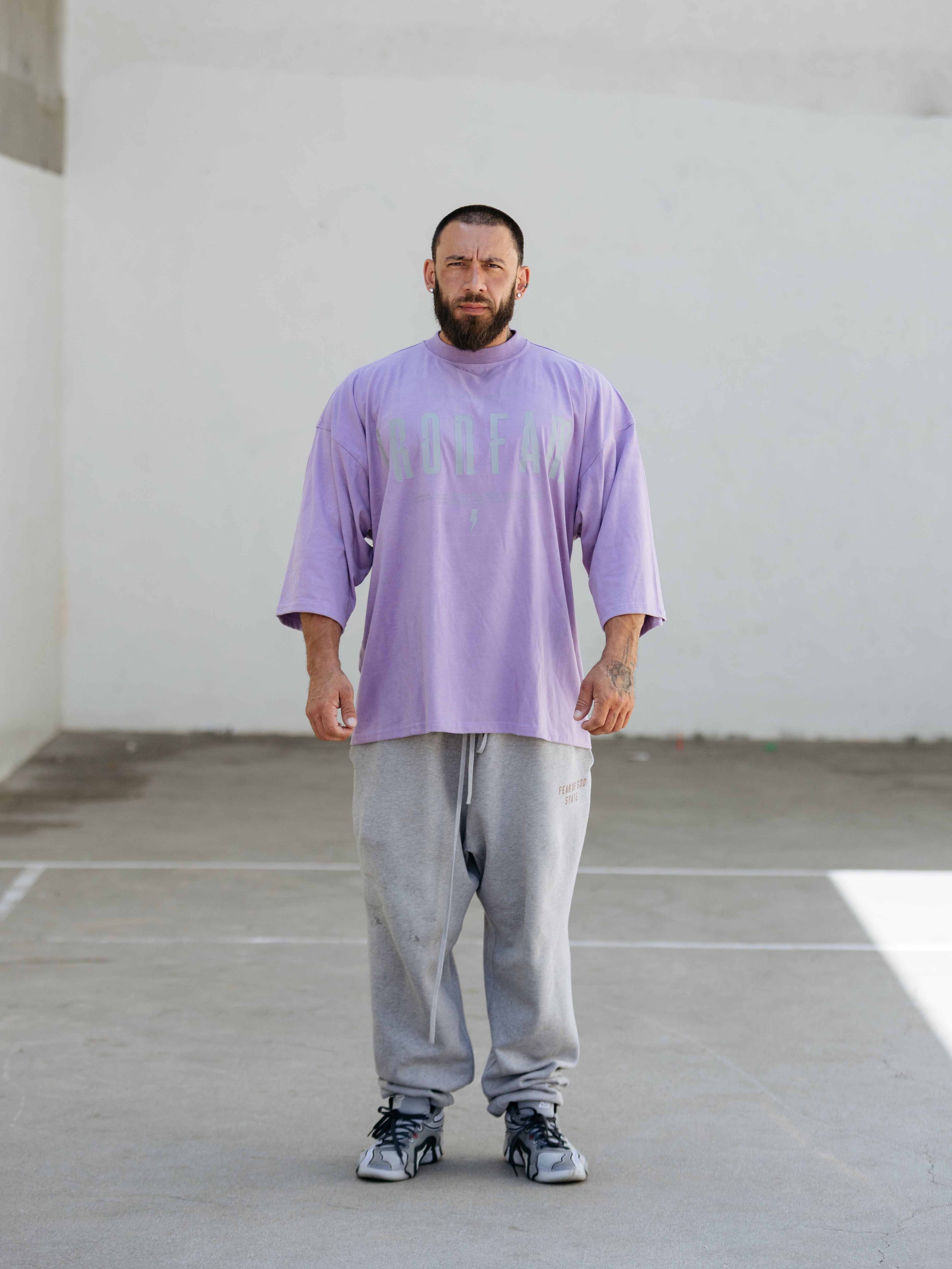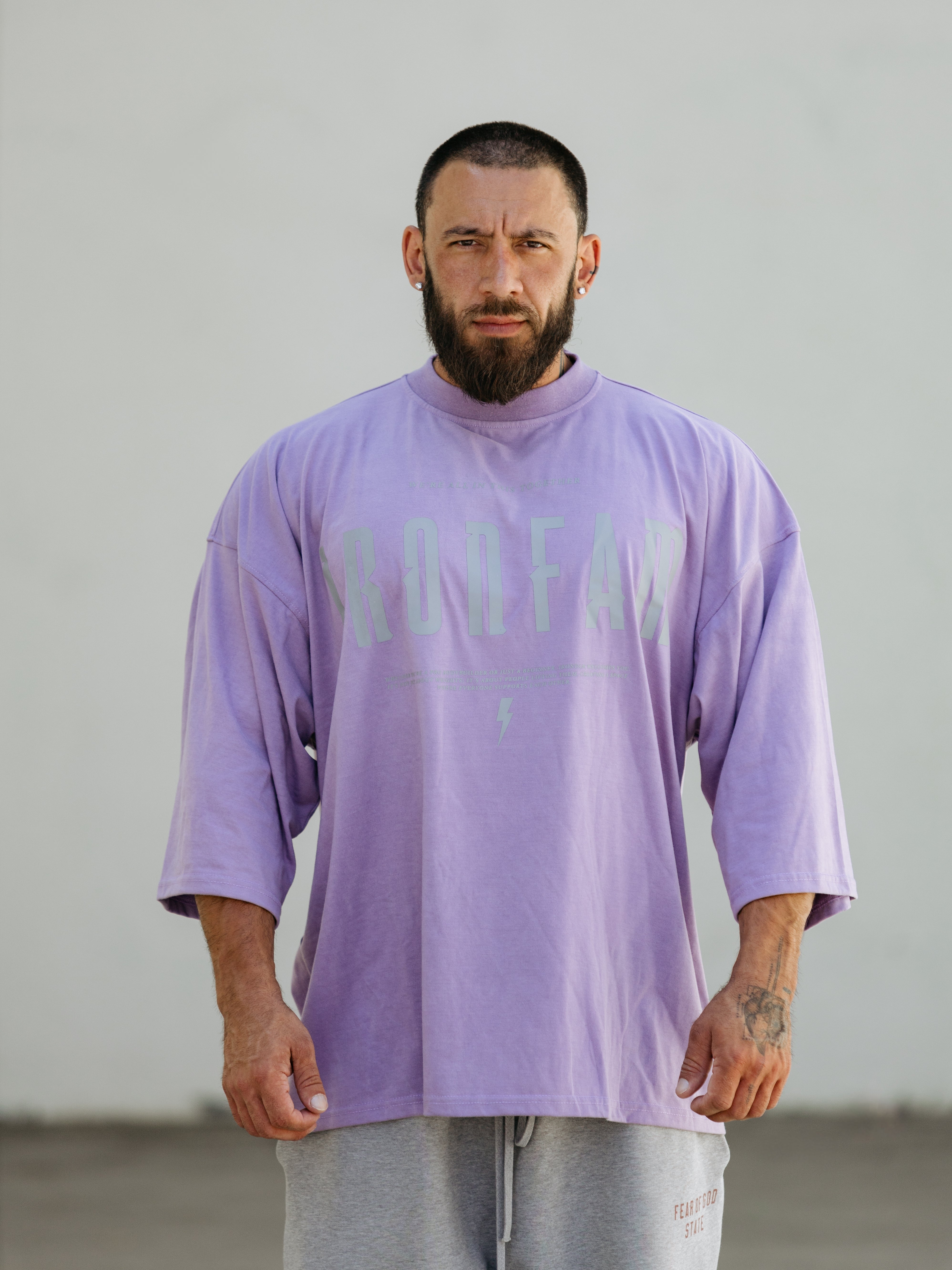 Elevate your gym style with our IRONFAM Pump-Cover T-Shirt, designed specifically for the bodybuilding community. This oversized, baggy style t-shirt is crafted from a high-density 300GSM cotton fabric, ensuring exceptional durability and longevity.