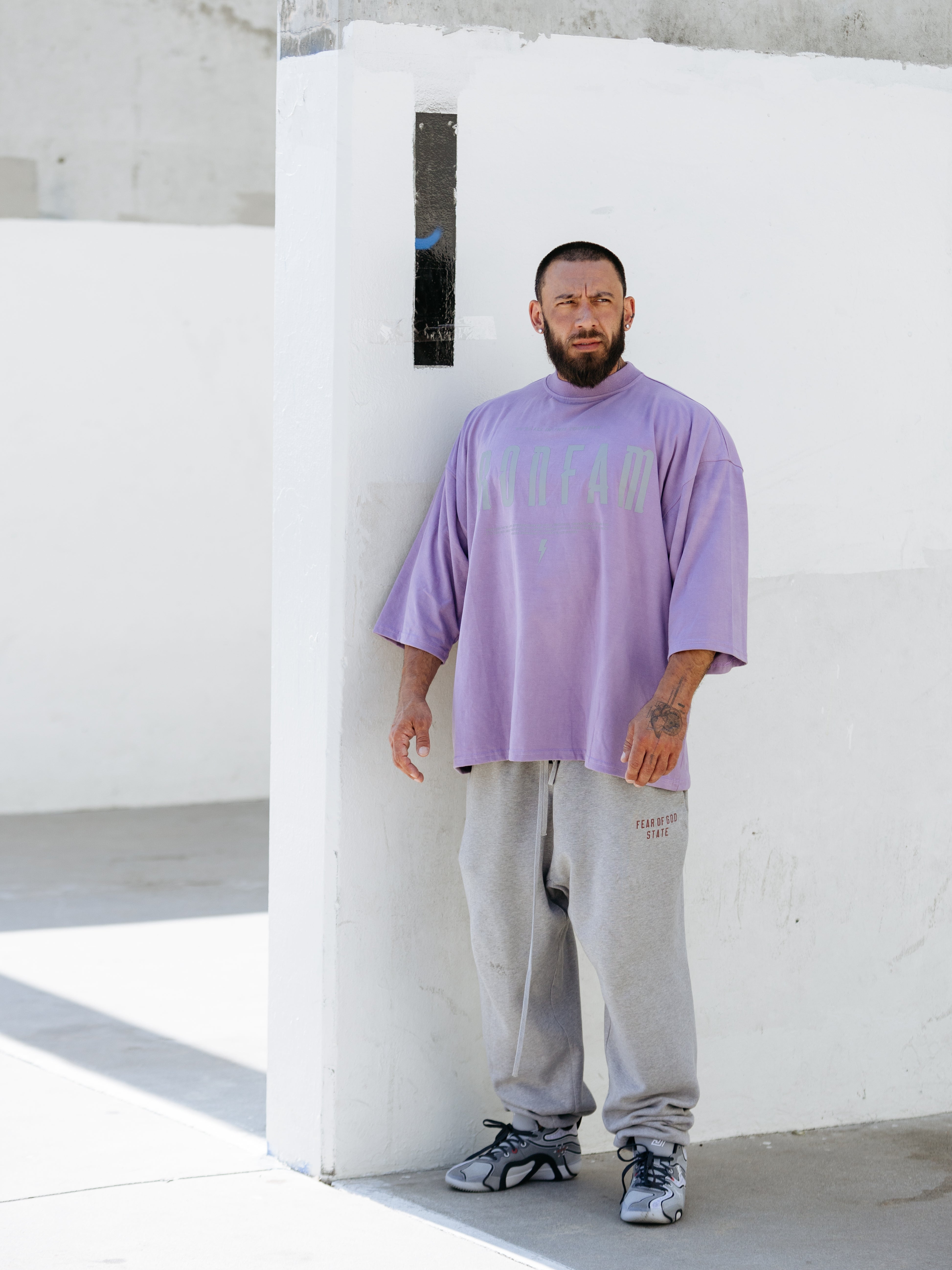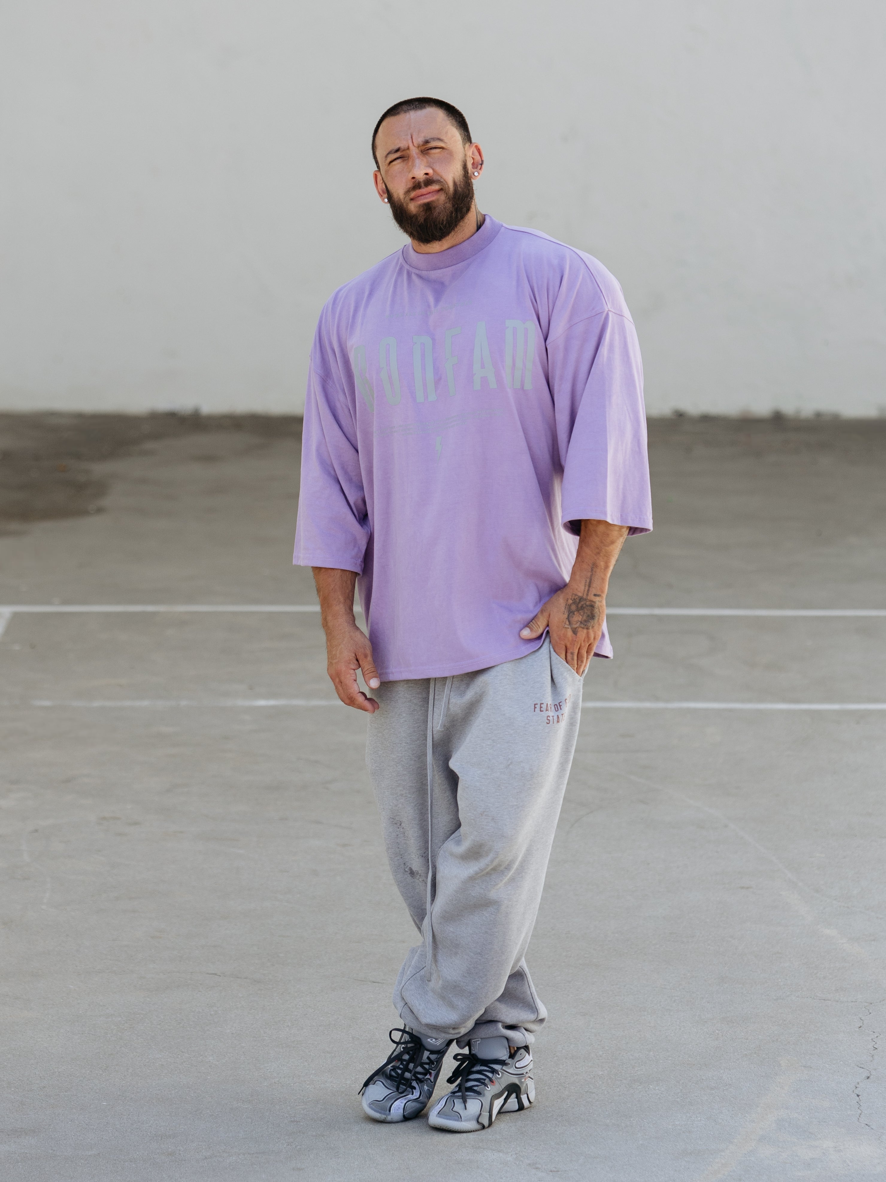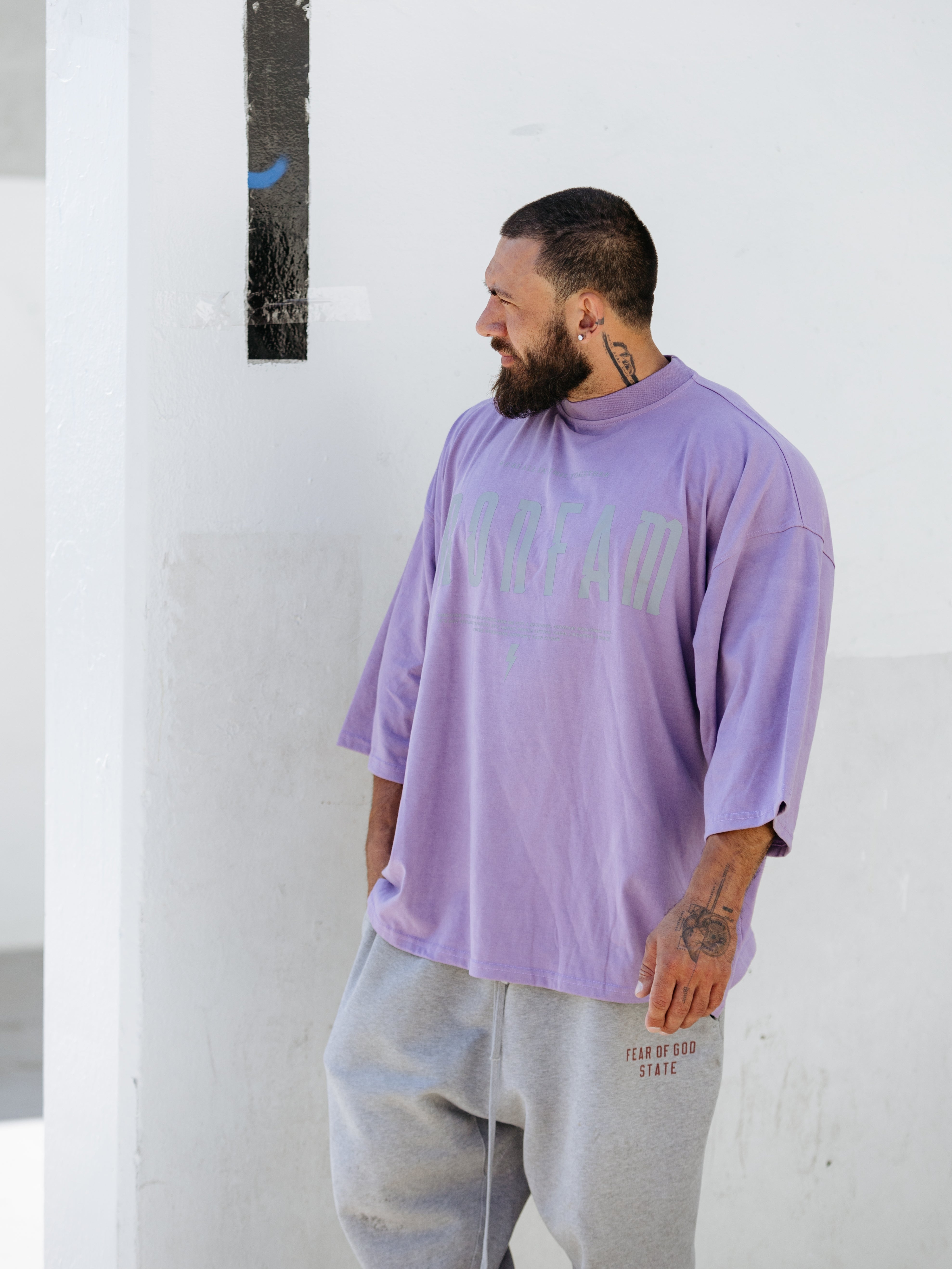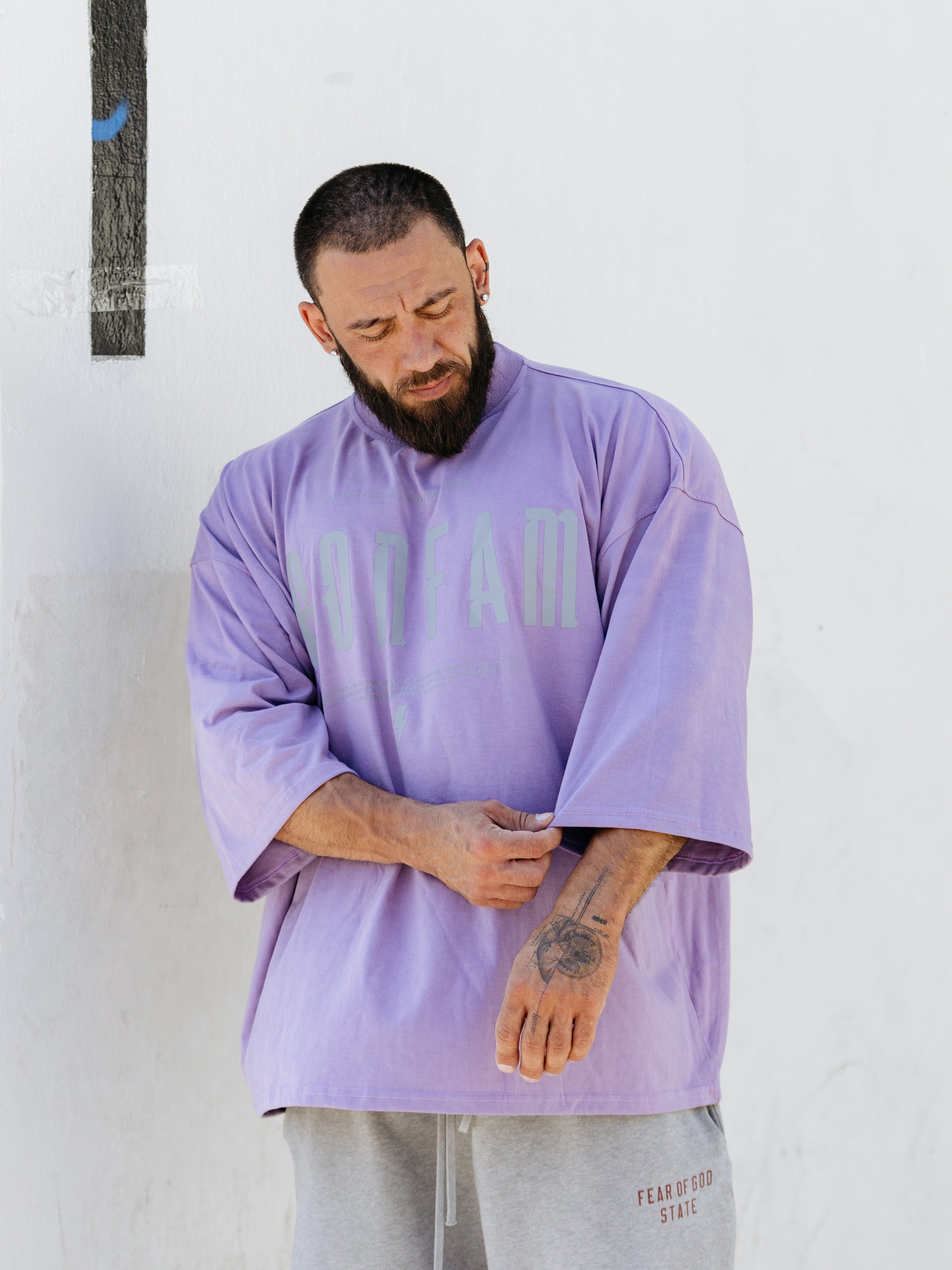 Elevate your gym style with our IRONFAM Pump-Cover T-Shirt, designed specifically for the bodybuilding community. This oversized, baggy style t-shirt is crafted from a high-density 300GSM cotton fabric, ensuring exceptional durability and longevity.